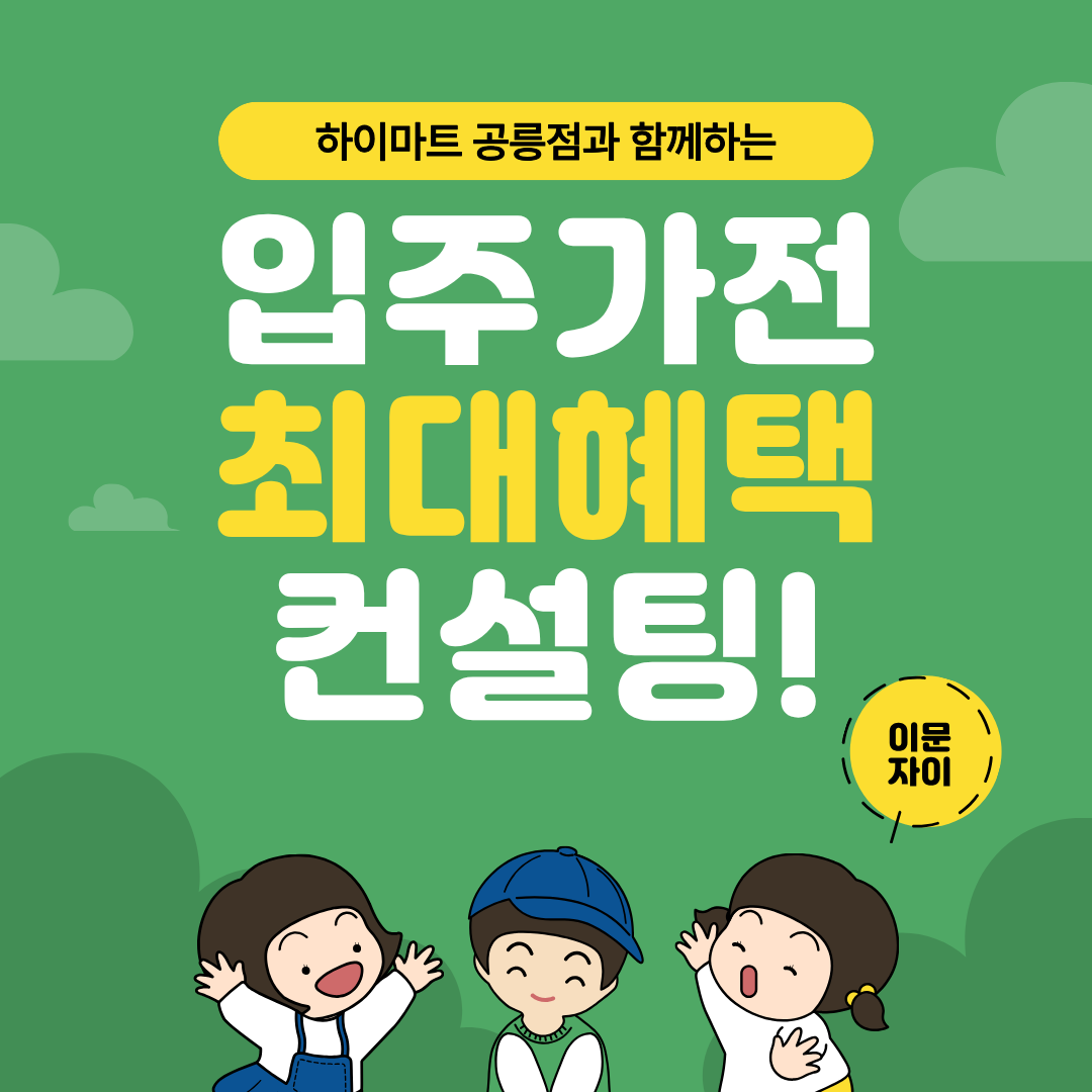 **이문자이 입주민 여러분, 주목하세요!** 하이마트 공릉점이 여러분의 고민을 해결해 드립니다. 복잡한 정보 탐색은 이제 그만, 하이마트 공릉점에서 쉽고 빠르게, 그리고 가장 합리적인 가격으로 입주 가전을 장만하세요.